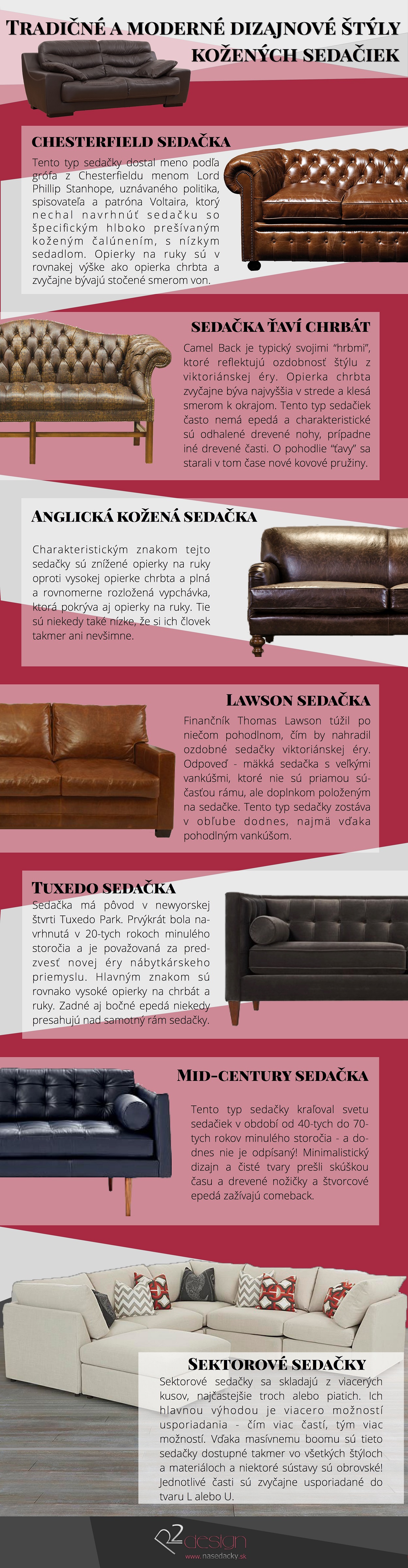 Zahlédli jste někde v televizi či časopisu nějakou sedačku a nevíte, o jaký styl si v obchodě s nábytkem říci? Nebo zrovna zařizujete obývací pokoj a rádi byste věděli, z jakých designů máte na výběr? S dnešní infografikou plnou luxusu a pohodlí to rozhodně nebude problém – přehledně totiž mapuje designové styly kožených sedaček, které naleznete v současných obchodních domech. Dozvíte se nejen to, jak daný typ vypadá a čím se vyznačuje, ale také zajímavosti o jeho historii…