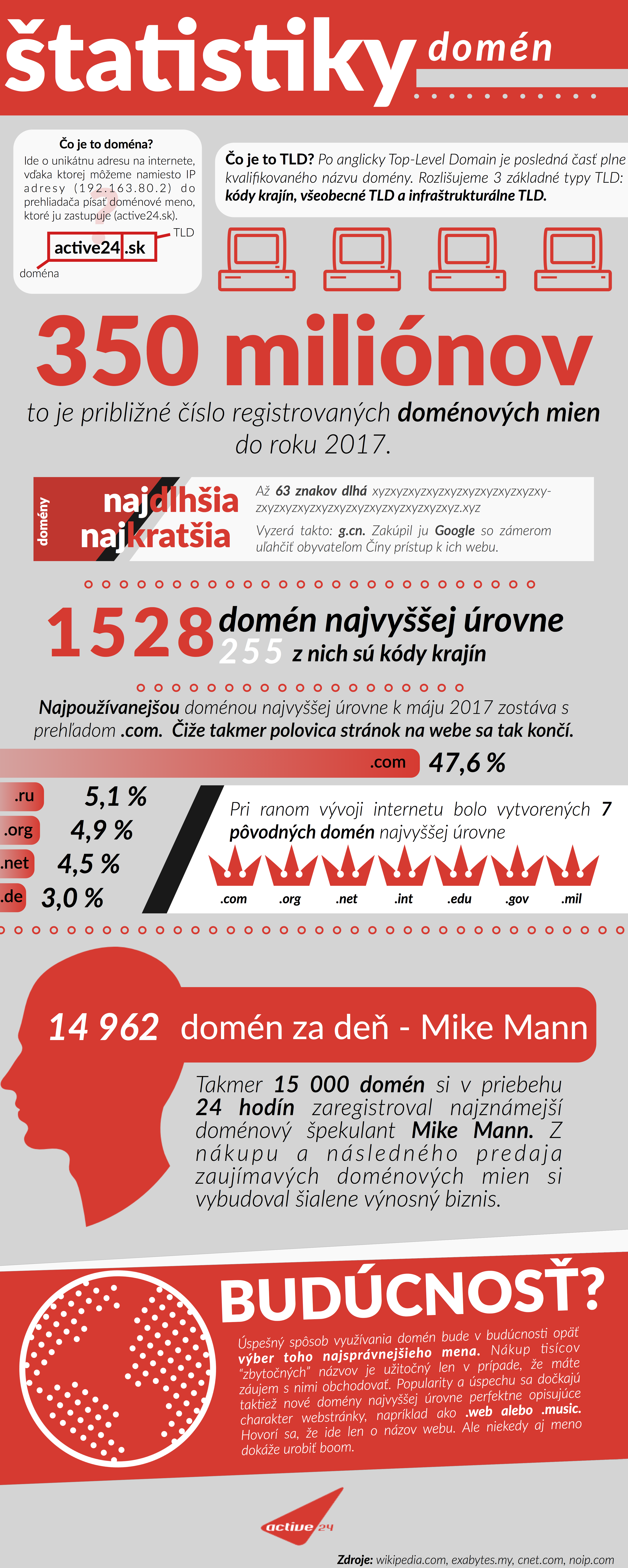 Před nějakou dobou jsme vám představili poutavá fakta o doménách, o kterých jste jistě neměli ani tušení. Prozradili jsme vám, čím jsou domény zajímavé a proč na té změti písmenek tolik záleží. A v dnešní infografice na tyto zajímavosti navážeme! Lidé, stojící za předním registrátorem domén na Slovensku, se tentokrát zaměřili na čísla, která vás dozajista překvapí. A nejsou to čísla jen tak ledajaká.
